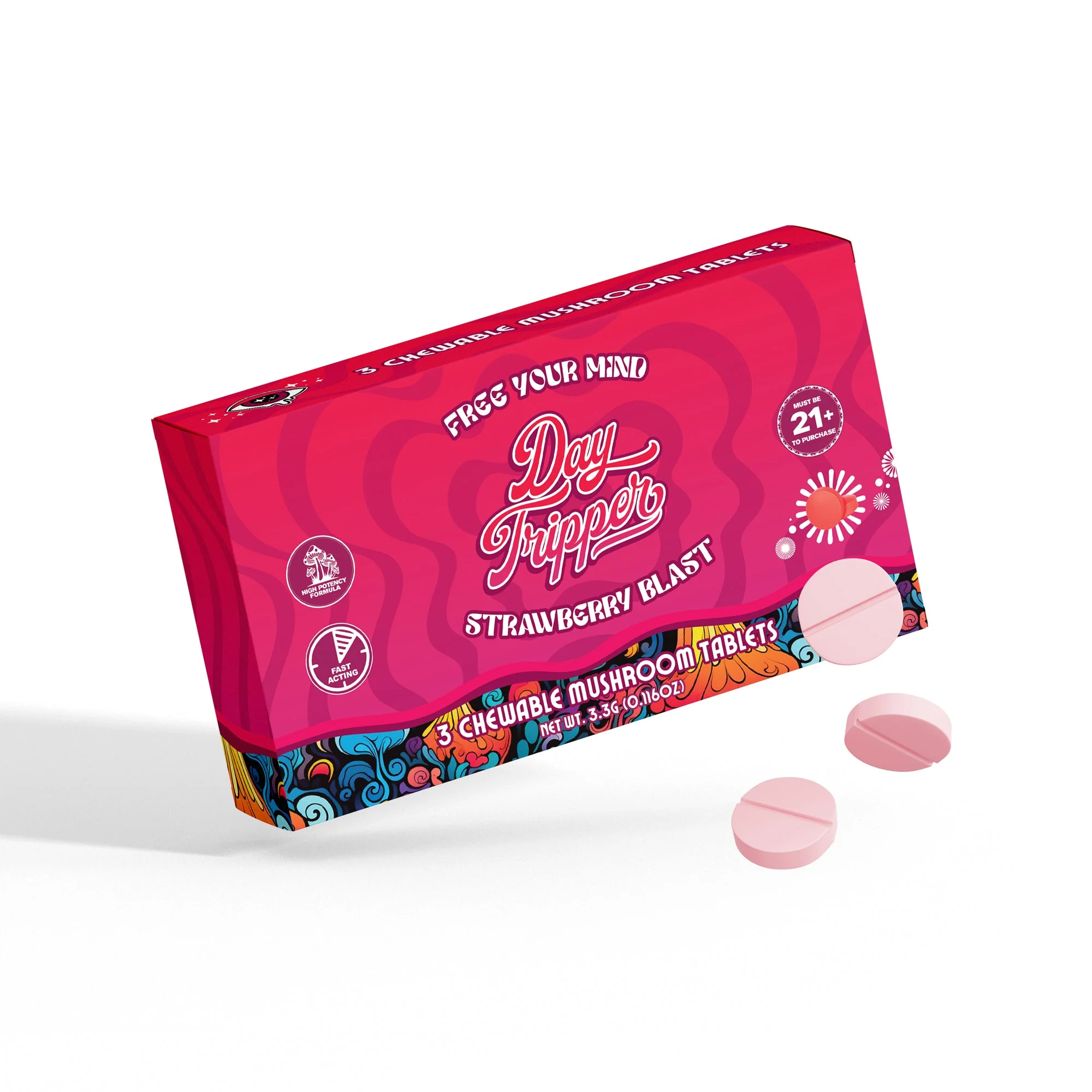 Day tripper gummies Strawberry Safari Mushroom Tablets are positioned for consumers who value convenience, flavor, and modern presentation. The product aligns with wellness-focused routines while maintaining a fun, approachable brand identity.